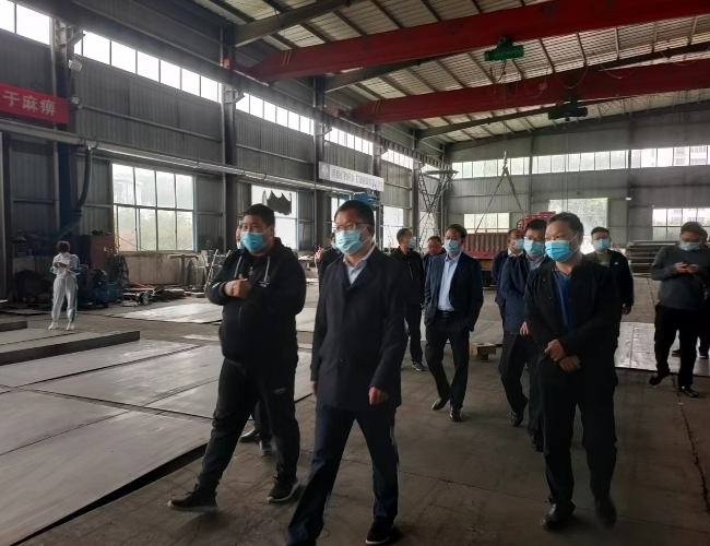 2022年4月15日上午,嵩县县委县政府领导、嵩县产业集聚区主管领导一行二十余人到江南官方网站_江南jiangnan(中国)--嵩县工厂进行实地调研。