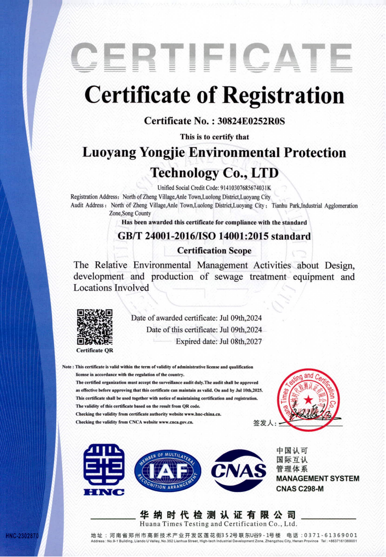 自从质量、环境及职业健康安全管理体系在公司运行以来,公司上下各部门高度重视,从生产、销售、办公、采购、环境、健康等各个方面,严格按照管理体系的要求来执行,公司各项管理工作更加合理、高 效。此次新一认证周期审核的顺利通过,是对公司多年来坚持管理体系运行工作的认可,我们将再接再厉,不断改进,在今后的公司运营中,凭借着质量、环境及职业健康安全管理体系,把永洁环保推向更高质量的发展。